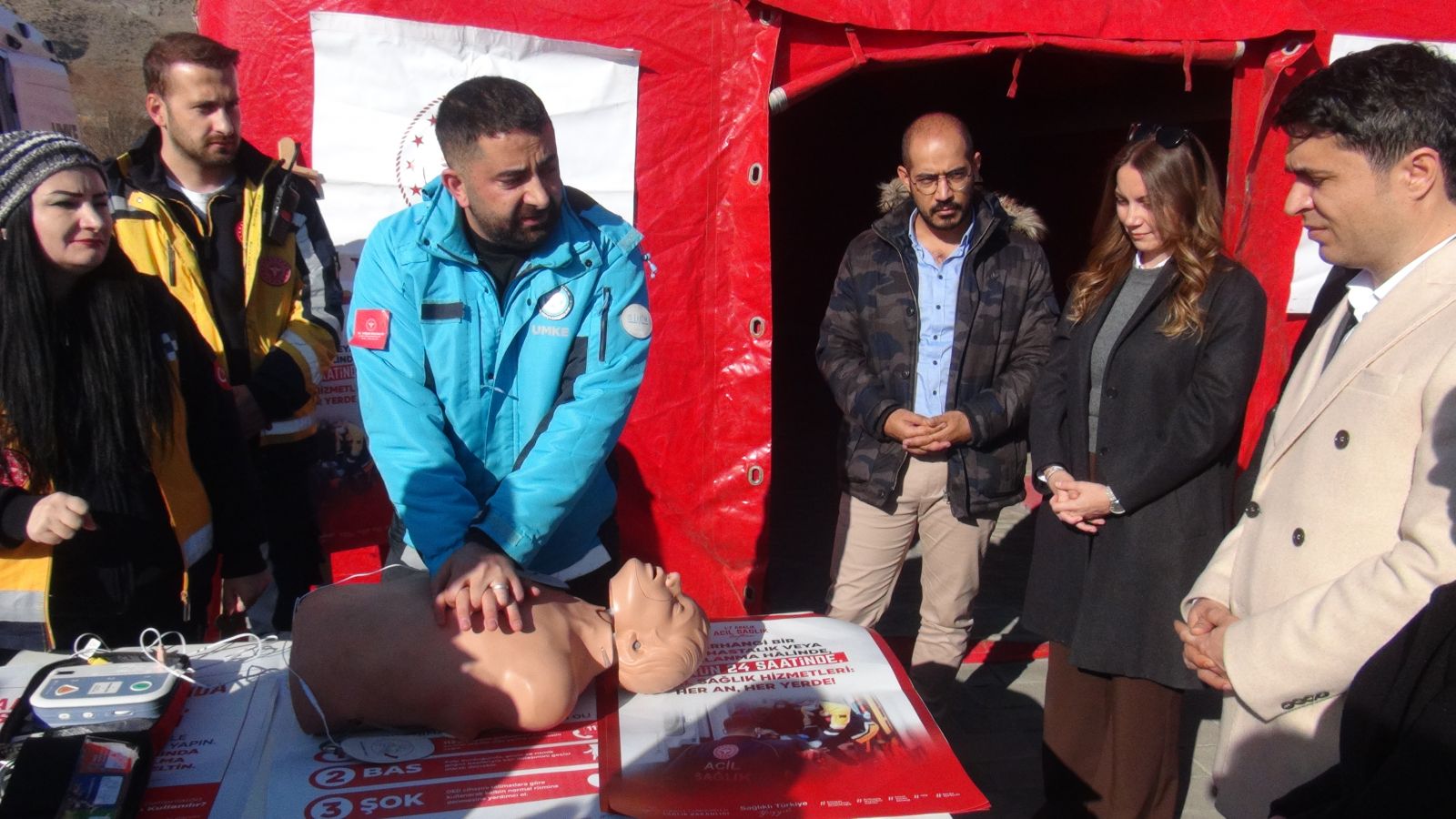 Kars İl Sağlık Müdürlüğü tarafından Bedesten alanında kurulan stantlarda, acil sağlık hizmetlerinin insan yaşamındaki önemi anlatıldı. Vatandaşlara olay yeri güvenliği, temel yaşam desteği ve ilk müdahale konularında bilgilendirme yapıldı. Hazırlanan maketler üzerinde canlandırmalar gerçekleştirildi, el broşürleri dağıtıldı.