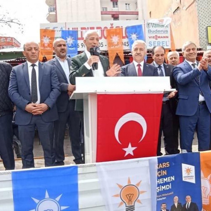 AK Parti Kars milletvekili adaylarına destek amacıyla Kars’ın Kağızman ilçesinde seçim bürosu açılışı yapıldı. 14 Mayıs seçimlerinde yapılacak olan milletvekilliği seçimi için AK Parti Kars milletvekili adaylarına destek amacıyla Kars’ın Kağızman ilçesinde seçim bürosu açılışı yapıldı. Açılış törenine 65. Dönem Ulaştırma, Denizcilik ve Haberleşme Bakanı Kars Milletvekili Ahmet Arslan ile Tarım, Orman ve Köyişleri Komisyonu Başkanı Kars Milletvekili ve milletvekili adayı Prof. Dr. Yunus Kılıç, milletvekili adayı Adem Çalkın ve Serkant Aykul, AK Parti Kars İl Başkan Vekili Kadir Sarıdağ ve yönetim kurulu üyeleri katıldı. Yapılan konuşmada partilerine destek istendi. Ardından esnaf ziyareti gerçekleştirildi.