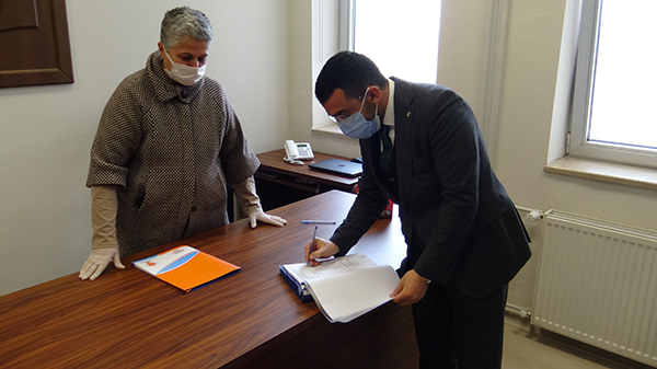 KARS PUSULA / ADEM ALPAK Parti Kars 7. Olağan Kongresinde yeniden güven tazeleyen İl Başkanı seçilen Adem Çalkın, Kars Adliyesine gelerek mazbatasını aldı.Merkez İlçe Seçim Kurulu Başkanı Hakim Mine Elmasulu'dan mazbatasını alan AK Parti Kars İl Başkanı Adem Çalkın, adliye çıkışında il yönetimi ile birlikte hatıra fotoğrafı çektirerek, basın açıklaması yaptı.Başkan Çalkın yaptığı açıklamada, Bugüne kadar bizimle birlikte görev almış, yönetimde birlikte çalıştığımız arkadaşlarımıza teşekkür ediyorum. Bugünden sonra da ekibimizle birlikte inşallah, yenilenmiş bir şekilde 7. Olağan Kongreden güçlü bir şekilde çıktık ve bundan sonra da Kars'ımıza ve Karslılara hizmet etmek için hep beraber bu kutlu yolda, inandığımız yolda yürüyeceğiz. Rabbim inşallah bizleri utandırmasın. Bugünden sonra tıpkı geçmişte olduğu gibi değerli milletvekillerimizle, ilçeleri başkanlarımız ve ilçe belediye başkanlarımızla, il genel ve belediye meclis üyelerimizle birlikte Karslılara hizmetkarlılığa devam edeceğiz.İl Başkanı Çalkın ve yönetimi daha sonra Ebul Hasan Harakani Türbesini ziyaret ederek dua ettikten sonra parti binasına geçerek ilk yönetim toplantısını gerçekleştirdi.