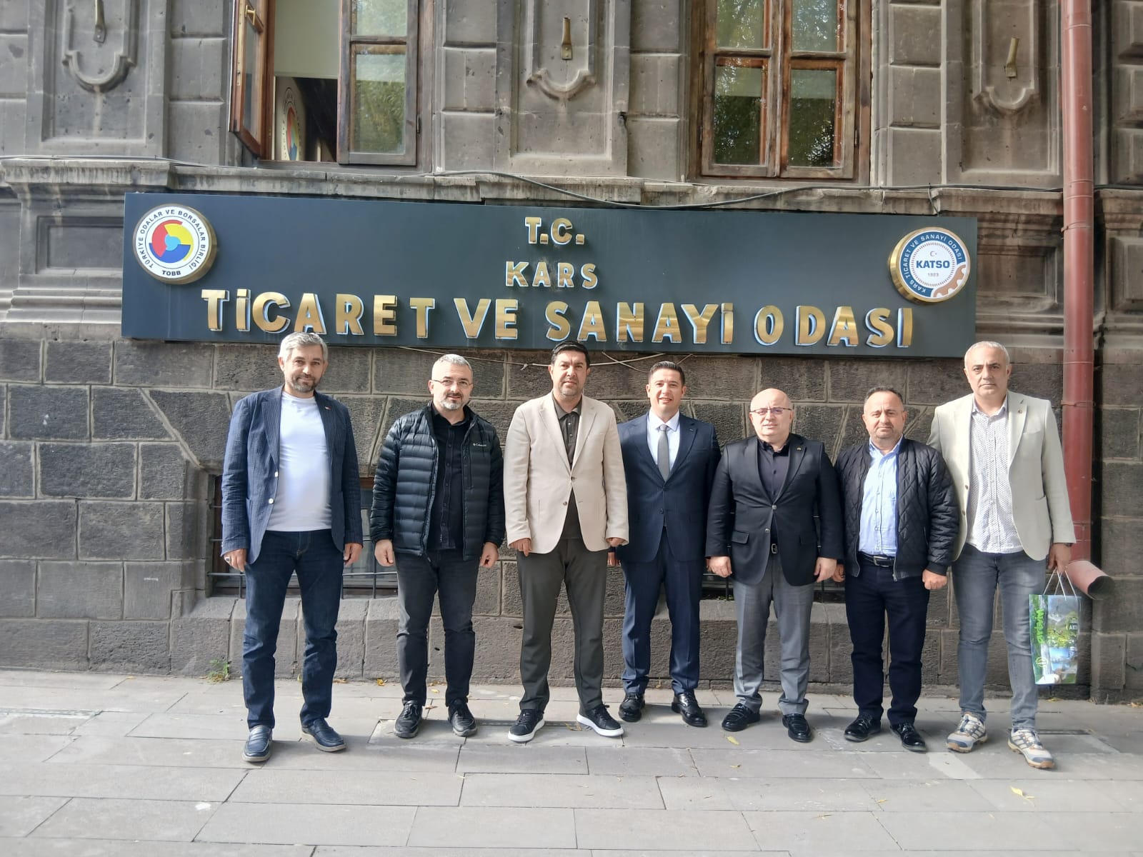 Artvin Ticaret ve Sanayi Odası (TSO) Meclis Başkanı İrfan Yıldırım, beraberindeki Artvin TSO Meclis Üyeleri ve Artvin Ticaret Borsası Meclis Üyeleri ile birlikte Kars Ticaret ve Sanayi Odası (KATSO) Yönetim Kurulu Başkanı Kadir Bozan’ı makamında ziyaret etti. Ziyarette, iki il arasındaki ticari ilişkiler, bölgesel ekonomik iş birliği olanakları ve ortak projeler üzerine istişarelerde bulunuldu.