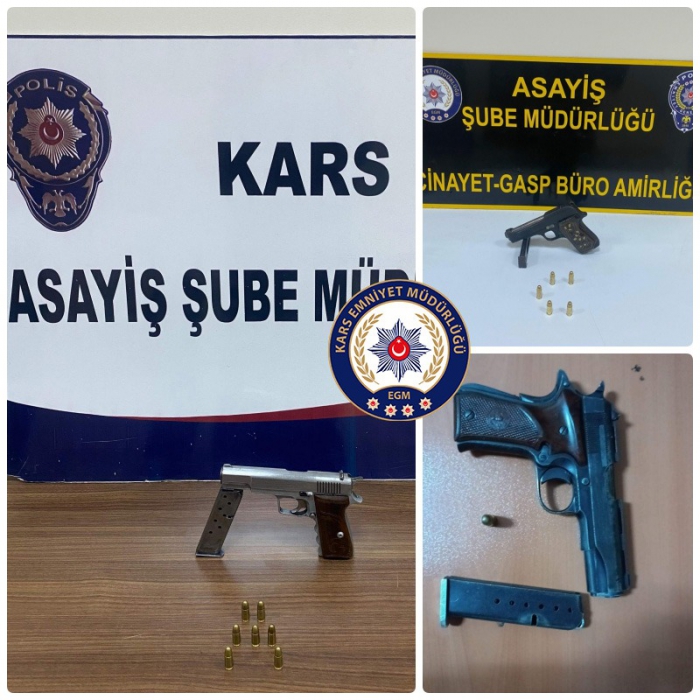 Kars İl Emniyet Müdürlüğü ekipleri her türlü suç ve suçluyla mücadele kapsamında şok uygulamalar sürdürüyor.Şok uygulamalar kapsamında; Kars’ta polis ekiplerince 3 adet ruhsatsız tabanca yakalandı. Gözaltına alınan 3 şahıs hakkında adli işlem yapıldı. Kars İl Emniyet Müdürlüğü Asayiş Şube Müdürlüğünce kent genelinde uygulama ve şok baskınlar aralıksız sürüyor.Ekiplerin yaptığı çalışmada, ruhsatsız 3 adet tabanca, tabancalara ait 3 adet şarjör ve 13 adet fişek ele geçirdi. Gözaltına alınan 3 şahıs hakkında adli işlem yapıldı.