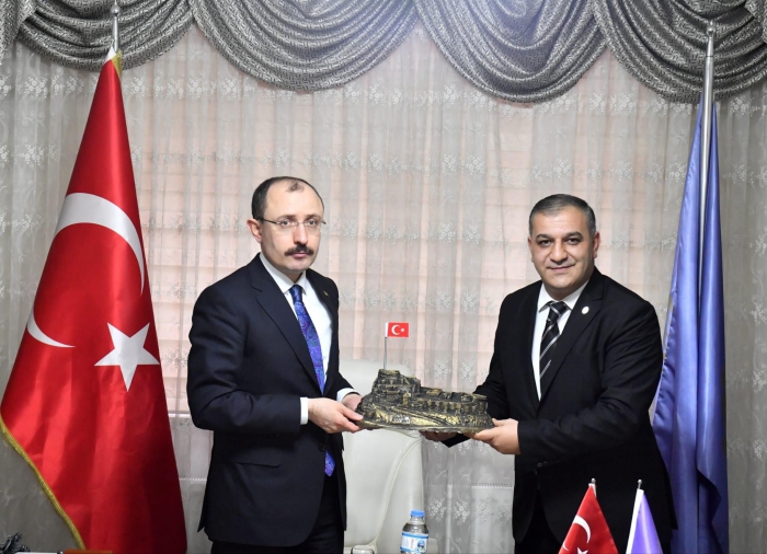Kars’a çeşitli programlara katılmak için gelen Ticaret Bakanı Mehmet Muş, Ticaret ve Sanayi Odası ile Esnaf ve Sanatkarlar Odalar Birliğini ziyaret ederek çalışmaları hakkında bilgi aldı. Temaslarda bulunmak üzere Kars'a gelen Muş, "2023'e Doğru Şehir Buluşmaları" programından sonra Kars Ticaret ve Sanayi Odası Başkanı Ertuğrul Alibeyoğlu ve yönetimi ile bir araya gelerek ilin ticareti hakkında görüş alış-verişinde bulundu. Ardından Kars Esnaf ve Sanatkarlar Odalar Birliğine geçen Bakan Muş, burada ESOB başkanı Murat Bakırhan ve esnaflar ile buluştu. Bakan Muş’un ESOB ziyaretinde 65. Hükümet Ulaştırma ve Haberleşme Bakanı ve Milletvekili Ahmet Arslan, Kars Valisi Belediye Başkan Vekili Türker Öksüz, Ak Parti Milletvekilleri, İl Başkanı Adem Çalkın ve Ticaret Bakanlığı Bürokratlarının eşlik ettiği ziyarette birlik toplantı salonunda düzenlenen toplantıda Kars ESOB Başkanı Murat Bakırhan tarafından esnaf ve sanatkarlar ile teşkilatın sorunları dile getirildi. Program sonunda Başkan Bakırhan Bakan Muş’a Kars Kalesi maketini takdim etti. Bakırhan, Bakan Muş’a bize de yer ayırarak sorunlarımızı dinleyip bize vakit ayırdığınız için esnaf ve sanatkârlarımız adına teşekkür ederiz dedi.