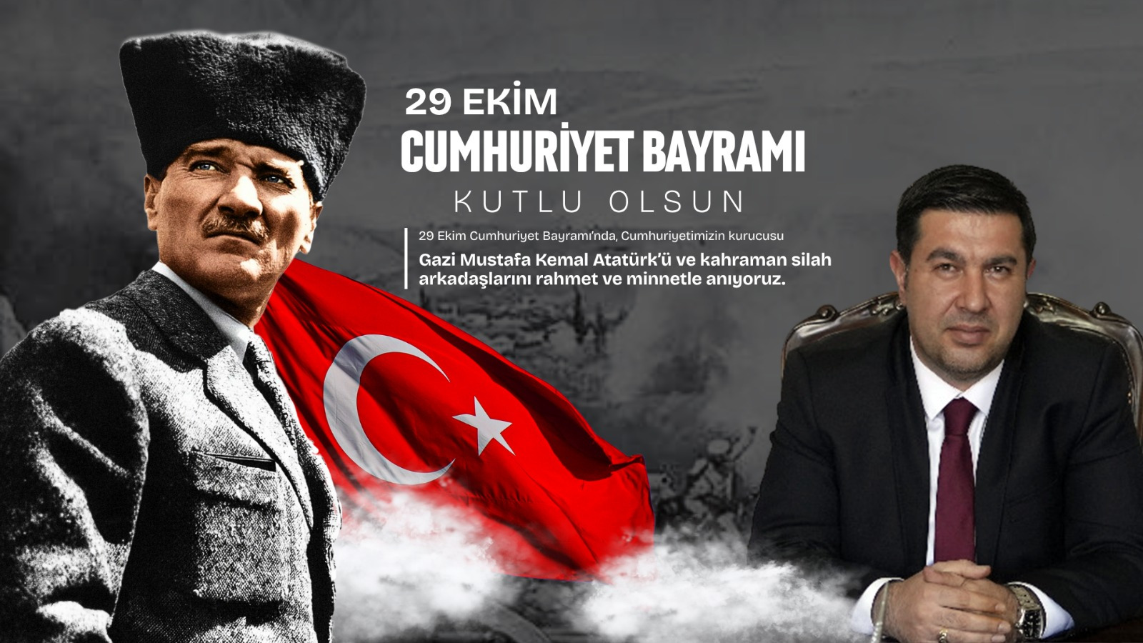 Başkan Bozan, “Bu vesileyle, başta Gazi Mustafa Kemal Atatürk ve silah arkadaşları olmak üzere, Cumhuriyetimizin kurulmasına emek veren tüm kahramanlarımızı rahmet, minnet ve saygıyla anıyor; aziz milletimizin 29 Ekim Cumhuriyet Bayramı’nı en içten dileklerimle kutluyorum.”