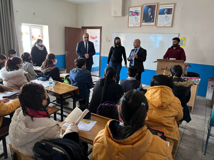 Selim Belediyesi ‘Kütüphanesiz Okul Kalmayacak’ projesi kapsamında okullara kitap desteği vermeye devam ediyor.Kars’ın Selim ilçesi Belediye Başkanı Coşkun Altun, eğitim-öğretime de verdiği destek her geçen gün artıyor.Başkan Altun, ‘Kütüphanesiz Okul Kalmayacak’ Projesi kapsamında ilçeye bağlı Bölükbaşı köyü Ortaokulu, Eskigazi İlk ve Ortaokulu ile Katranlı ilkokullarını ziyaret ederek okulların kütüphanelerine öğrencilerin faydalanmaları için kitap hediye etti.Okul müdür ve öğretmenleriyle de bir araya gelen Başkan Altun, çocuklarının eğitimine katkıda bulunmak için ellerinden gelen her şeyi yapacaklarını belirtti. Altun, daha sonra bir süre öğrencilerle sohbet ederek, öğrencilerden okumalarını istedi.