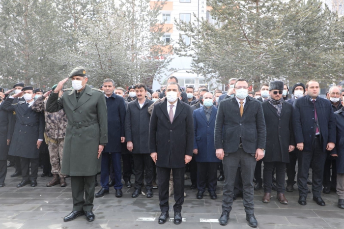 Çanakkale Zaferi'nin 107. yıldönümü dolayısıyla Kars'ta tören düzenlendi. Garnizon Şehitliği'nde düzenlenen ilk törene; Vali/Belediye Başkan Vekili Türker Öksüz, 14. Mekanize Piyade Tugay Komutanı Tuğgeneral Hakan Tunç, Kafkas Üniversitesi Rektörü Prof. Dr. Hüsnü Kapu, Cumhuriyet Başsavcı Vekili Ahmet Kınık, Kars Baro Başkanı Fettah Çapkurt, İl Emniyet Müdürü Yavuz Sağdıç, İl Jandarma Komutanı Albay Hıdır Ayçiçek, asker ve öğrenciler ile şehit yakınları katıldı.Şehitlik anıtına Valilik, Garnizon Komutanlığı ve Belediye Başkanlığı'nın çelenk sunumuyla başlayan program saygı duruşu ve İstiklal Marşının okunması ve saygı atışı ile devam etti. Vali Türker Öksüz, şeref defteri imzalandı.Vali/Belediye Başkan Vekili Öksüz, "Aziz Milletimizin, özgürlüğü ve vatanı için gerektiğinde neleri feda edebileceğini tüm dünyaya haykırdığı 18 Mart Çanakkale Zaferini kutlamak ve siz aziz şehitlerimize olan minnet ve şükran duygularımızı sunmak üzere huzurunuzdayız. Sizler vatan, millet, bayrak ve mukaddesatınız uğruna en değerli varlığınız olan canınızı hiç düşünmeden feda ederek yüce dinimizce bir insanın yükselebileceği en yüksek mertebe olan şehadet makamına ulaştınız. Tarihte eşine az rastlanır bir kahramanlık destanı olan Çanakkale Zaferi ; Kurtuluş savaşından Cumhuriyetin kuruluşuna giden süreçte milletimizin verdiği en büyük varoluş mücadelesi olduğu gibi tarihten silinmek istenen bir milletin vatanını canı pahasına nasıl savunacağını göstermesi bakımından da ibret alınması gereken bir hadisedir" dedi. Öksüz, "Tüm dünya bilmelidir ki Türkiye Cumhuriyeti Devleti, bugüne kadar olduğu gibi bundan sonra da ordusu ve milletiyle tek yürek halinde, vatan topraklarını korumak adına her türlü terör odaklarına ve emperyalist güçlere karşı mücadele etme azim ve kararlılığındadır. Bizler sağ oldukça Anadolu Türk Yurdu olarak kalacak, Ay yıldızlı al bayrak yurt semalarında hür olarak dalgalanacaktır. Çanakkale Zaferi'nin 107'inci yıldönümünde bu cennet vatanı, bayrağı ve istiklali bizlere mukaddes bir emanet olarak bırakan başta Gazi Mustafa Kemal Atatürk ve silah arkadaşları olmak üzere, şanlı tarihimizdeki nice zaferleri bize armağan eden siz Aziz Şehitlerimizi bir kez daha rahmet ve minnetle anıyoruz" şeklinde konuştu.Şehitlikte düzenlenen program, şehitlik müzesi gezildi ardından dualar edildi. protokol tarafından şehit kabirlerine karanfil bırakıldı.Program daha sonra İl Kültür ve Turizm Müdürlüğü Salonu'nda devam etti. Saygı duruşu İstiklal Marşı'nın okunmasıyla başlayan program, Bir öğretmen ve asker tarafından günün anlam ve önemi belirten konuşmaya ile devam etti.Şiir dinletisi, yapılan konuşmalar, Çanakkale Destanı Oratoryosu ve koro gösterisiyle son buldu.