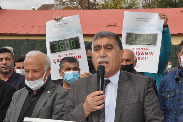 CHP Kars İl Başkanı Taner Toraman, “3600 ek gösterge için milyonlarca memur CHP iktidarını bekliyor” dedi.İYİ Parti Kars İl Başkanı Yüksel Akbaba’nın da destek verdiği açıklamaya Susuz İlçe Belediye Başkanı Oğuz Yantemur ve partiler katıldı. Kent Meydanında yapılan açıklamada CHP Kars İl Başkanı Taner Toraman, “3600 ek gösterge için milyonlarca memur CHP iktidarını bekliyor” dedi.Toraman yaptığı açıklamada, “Bugün Türkiye’nin her yerinde, iktidar tarafından 24 Haziran seçimleri öncesinde söz verilen ancak bugüne kadar hiçbir bir adım atılmayan bir vaadi, bir sözü, gerçekleştirilmeyen bir müjdeyi dile getirmek için toplandık. Bugün ülkenin her yerinde 3600 Ek Gösterge hakkı için yıllardır bekleyen, milyonlarca memurumuzun sesi olmak için buradayız. Türkiye’de milyonlarca kamu çalışanı Devletine verdiği hizmetlerin karşılığında insanca yaşamak için hak talebinde bulunuyor; çalışırken de emekli olduğunda da insanca yaşayabileceği bir ücret talep ediyor. Ömrünün yarısını devletine hizmet etmekle geçiren memurlarımız, hanlar hamamlar, yazlık kışlık saraylar, lüks otomobiller veya uçaklar değil, yalnızca bir nebze olsun insanca yaşayabileceği ücrete sahip olmak için 3600 ek gösterge talebinde bulunuyor.” ifadesini kullandı. Toraman’ın yaptığı açıklaması şöyle: “Ne yazık ki, AKP iktidarı seçim dönemlerinde, altı bir türlü dolmayan, vaatten öteye gitmeyen müjdelerle insanlarımızın geçim dertleri üzerinden oy devşirmeye, gündem değiştirmeye çalışmaya devam ediyor. 24 Haziran Seçimleri öncesi AKP Genel Başkanı ne demişti: