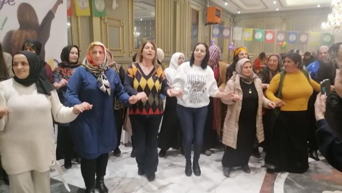 Kars’ta DEM Parti öncülüğünde düzenlenen programda kadınlar günleri halaylar çekerek kutladı. Düğün Salonunda düzenlenen etkinliğin açılış konuşmasını yapan Halkların Eşitlik ve Demokrasi Partisi Kars Belediye Başkan Adayı Arzu Savaş Derman, “Özgür, eşit, yaşanılabilir bir dünya için ayaktayız. Maalesef dünyanın her yerinde, her gün onlarca kadın öldürülmekte, kadınlar katlediliyor, kadınların yoksulluğu her geçen gün ayyuka çıkıyor. Erkek egemenliği kendini her gün yeniden üretmek için biz kadınların yaşamını yok saymaya devam ediyor. Kadın düşmanı bu zihniyetler kadına yönelik şiddeti dünyasına yansıtıyor. İstanbul Sözleşmesi'ni bir gecede fes ettiler. Medeni, yaşamayı hedef alanlar, nafakamıza göz dikenler, 6284 sayılı yasaya uymayanlar, gerçek adalet değil de erkek adaleti dağıtanlar, kadının iradesini yok sayıyorlar." Dedi.DEM Parti İstanbul Milletvekili Çiçek Otlu ise, “ Başta Figen Yüksekdağ'a adayımız olan Ankara Büyükşehir Belediye Eş Başkanımız Gülten Kışanak'a selamlarımızı yollayalım. Ülkede erkek egemen sistemini yıkana dek savaşmaya ve mücadele etmeye devam edeceğiz. Bu ülkede bizi ev hizmetçisi yapmak istiyorlar, sadece çocuk doğuran bir kuluçka makinesi yapmak istiyorlar. Evde sadece bulaşık yıkayıp, temizlik yapın ve çocuklara bakın diyorlar. Ama biz Kars’ta neyi göstereceğiz? Sadece çocuk yapmayacağımızı, bu yerel yönetimlerde sözümüzün olduğunu, değiştirecek gücümüzün olduğunu gösterecek miyiz Kars’tan? Peki, Kars’ta belediyeyi almak için her gün belediye eş başkanımızla birlikte kapı kapı dolaşacak mıyız?” ifadesini kullandı.Konuşmaların ardından çalınan şarkılarla kadınlar halay çekerek günlerini kutladılar.