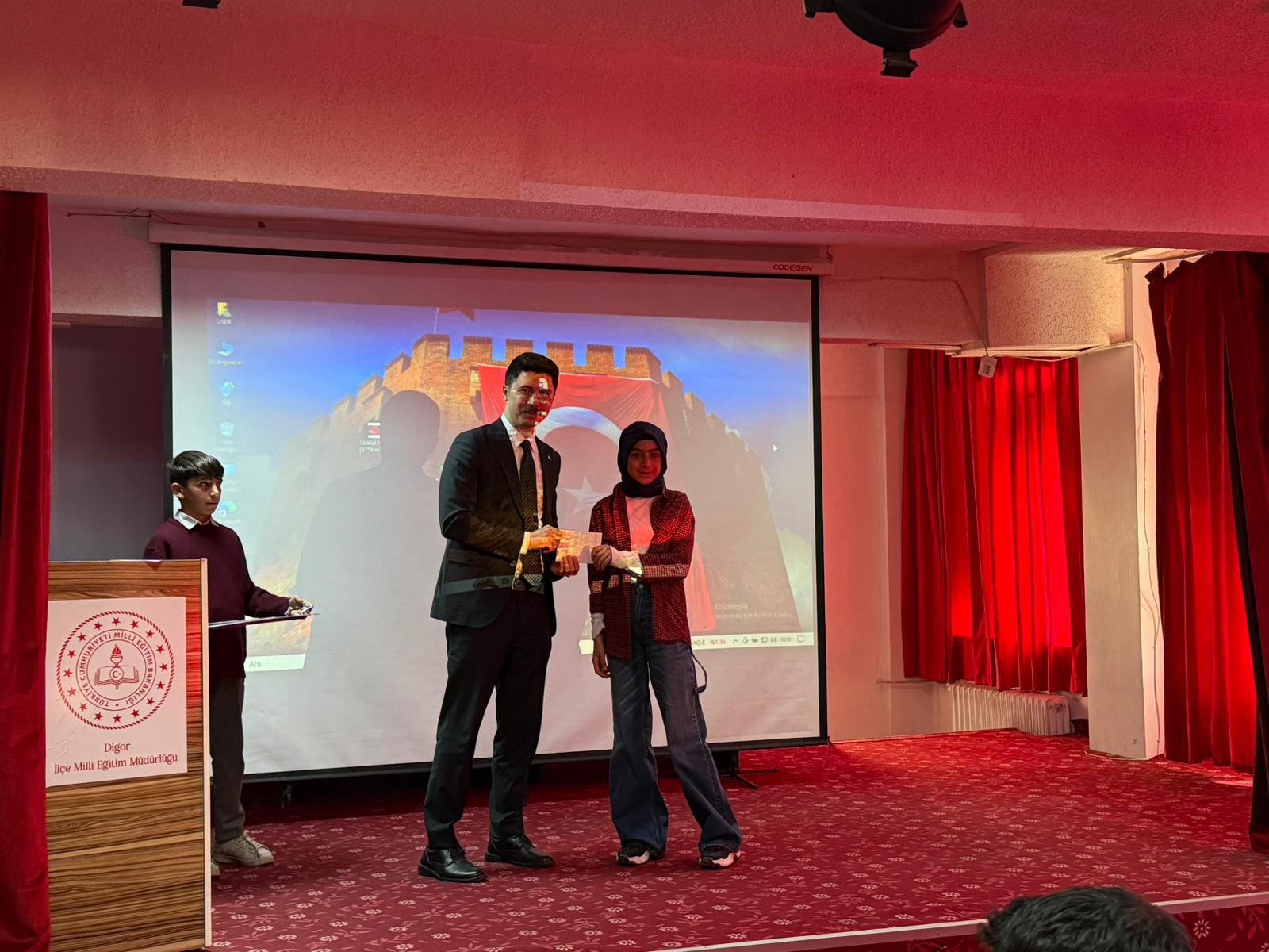 Programın sonunda düzenlenen İstiklal Marşı Okuma Yarışması’nda dereceye giren öğrencilere Kaymakam Kahraman tarafından çeşitli hediyeler verildi. Günün anlamına binaen resim sergisi düzenlendi.