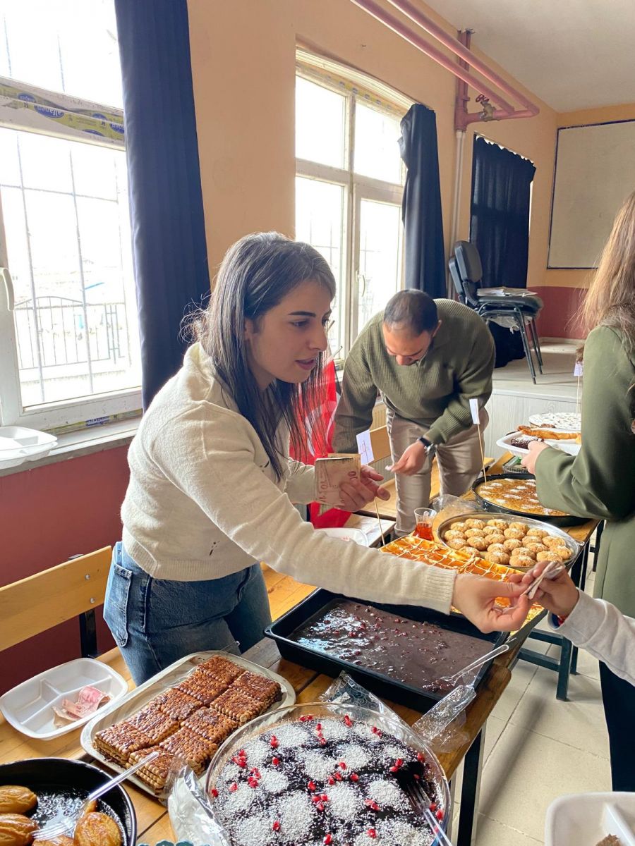 Etkinlikte konuşan okul müdürü, “Gazze ve Filistin’de yaşanan acılar hepimizin yüreğinde. Bizler burada küçük bir adım atıyoruz ama bu adım, büyük bir gönül bağına dönüşüyor. Bu destek sadece bugünle sınırlı kalmayacak, yıl boyunca sürecek.” ifadelerini kullandı.