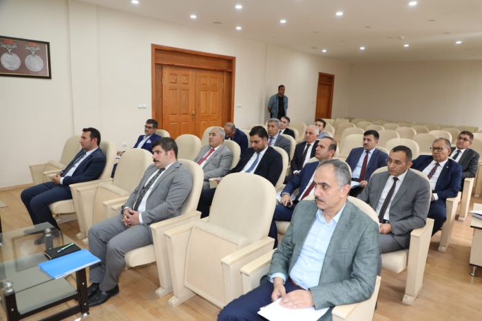 5442 Sayılı İl İdaresi Kanunu’nun 24’üncü maddesi gereğince yapılan İl İdare Şube Başkanları toplantısı, Kars Valisi Belediye Başkan Vekili Türker Öksüz başkanlığında Valilik Gazi toplantı salonunda gerçekleştirildi. Toplantıda; kamu kurum ve kuruluşları arasında koordinasyon ve iş birliğinin sağlanarak eğitim-öğretimin güvenli bir ortamda sürdürülmesi, ihtiyaç olması durumunda kamu kurumu misafirhanelerinin barınma ihtiyacı olan öğrencilere tahsis edilmesi, Çocuk ve Gençler Sosyal Koruma ve Destek Programı (ÇOGEP) destek verilmesi, Aile İçi ve Kadına Yönelik Şiddetle Mücadelede etkin uygulamaların devam ettirilmesi, yeni eğitim öğretim yılında alınacak asayiş ve trafik tedbirlerine etkin destek verilmesi, Cumhurbaşkanlığının 04.12.2021 tarihinde yürürlüğe giren 2021/14 sayılı Genelgesi doğrultusunda ulusal ve uluslararası etkinlik, tanıtım kampanyası, kurumsal kimlik çalışmalarında “Turkey” yerine “Türkiye” ibaresinin kullanılması, kamuda tasarruf tedbirlerine azami hassasiyet gösterilmesi, kurumların engelli erişimi, engellilere hizmet verilmesi konusundaki eksikliklerin acilen tamamlanması, vatandaşların kendileri ve kamu kurumlarıyla ile ilgili dilek ve şikayetleri hakkında yapılan başvuruların sonuç ve safahatlarının düzenli olarak izlenmesi ve sonuçlandırılması, “Sıfır Atık Projesi” kapsamında yapılan uygulamaların titizlikle sürdürülmesi, konuları görüşülerek karara bağlandı.Kars Valisi ve Belediye Başkan Vekili Türker Öksüz, görüşülen gündem maddeleri sonucunda alınan kararların titizlikle uygulanmasını ve tüm kamu kurumlarınca yapılan çalışmaların halka hizmet esasıyla ve çözüm odaklı olarak yapılması talimatı verdi.