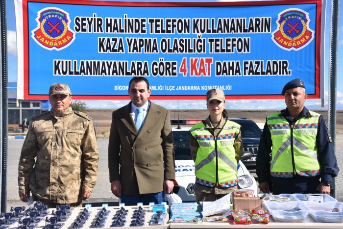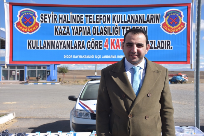 Digor Kaymakamı Orhan Gazi Karakaş ve Digor İlçe Jandarma Komutanı Binbaşı Taşkın Kılıç uygulamaya katılarak, seyir halinde telefon kullananların kaza yapma olasılığı telefon kullanmayanlara göre 4 kat daha fazla olduğunu sürücülere anlattı.