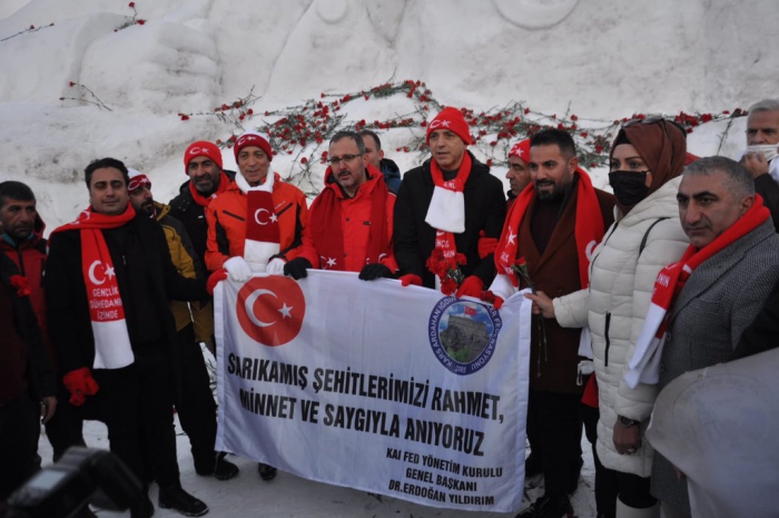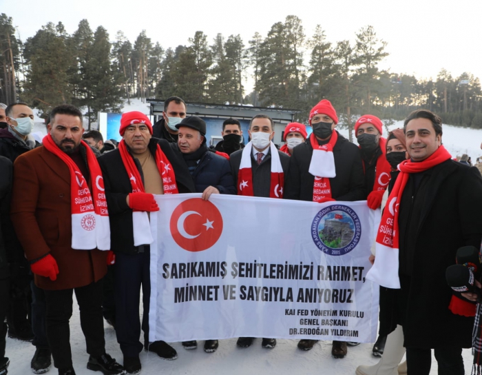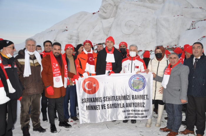 Kars Ardahan Iğdır Dernekler Federasyonu (KAI-FED) Genel Başkanı Dr. Erdoğan Yıldırım, yönetim kurulu üyeleriyle birlikte Sarıkamış Harekatı'nın 107'nci yılı anma programına katıldı.Sarıkamış ilçesindeki anma programına tam kadro katılan KAI-FED yönetimi, Genel Başkan Erdoğan Yıldırım ile birlikte şehitler anısına, ‘karı yorgan edenler’ temasıyla yapılan kardan heykelin açılışı ve büyük yürüyüşe katıldılar.Sarıkamış Şehitleri 107. yılında düzenlenen törenlerle bir kez daha anıldı. Anma programına onbinlerce insan Türkiye'nin dört bir tarafından gelerek şehitlerini andı. Düzenlenen anma törenlerine bu yılda yönetim olarak katılan, Kars Ardahan Iğdır Dernekler Federasyonu yönetimi Sarıkamış Şehitlerini andı. Sarıkamış Şehitleri hakkında açıklama yapan, KAI Dernekler Federasyonu Genel Başkanı Erdoğan Yıldırım, "Sarıkamış bir kahramanlık destanıdır, şerefli bir dik duruştur. Vatanını savunmak için yazlık elbiselerle ölüme yürüyen gencecik fidanlarımızın terleyen bedenlerinin nasıl buzdan heykellere dönüştüğünün destanıdır. Vatan uğruna, bu topraklar uğruna, bizlerin hür ve özgür yaşayabilmesi için hayatlarının baharında gözünü kırpmadan ölüme yürüyen, vatan evlatları bir destan yazdılar. Bu destanın adı "Sarıkamış Destanıdır" dedi. Yıldırım, “23 Aralık 1914 - 05 Ocak 1915 tarihleri arasında yaşanan ve şehit olan doksan bin Mehmetçiğimizin yazdıkları Sarıkamış Destanının 107. yıldönümünde onların aziz hatıraları önünde saygıyla eğiliyoruz. Tüm Şehitlerimizi Rahmet ve Minnetle Anıyoruz. Ruhları şad olsun” ifadelerini kullandı.