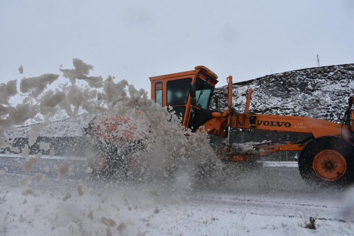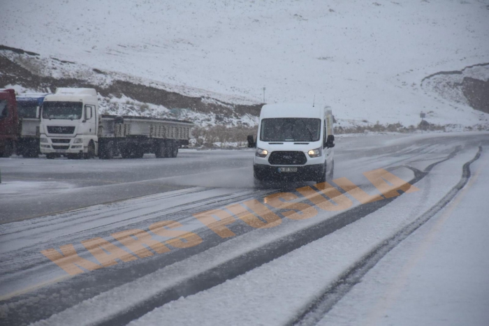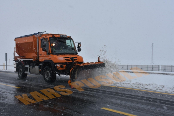 Kars-Iğdır kara yolunun Hanlar Geçidi mevkisinde kar etkisini sürdürüyor.