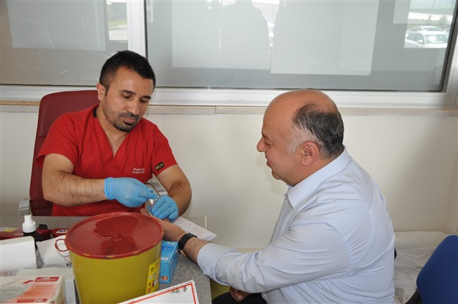 Başsavcı Aygün ve beraberindekiler daha sonra kan bağışında bulundu. Kurulan kan bağışı standı yoğun ilgi gördü.