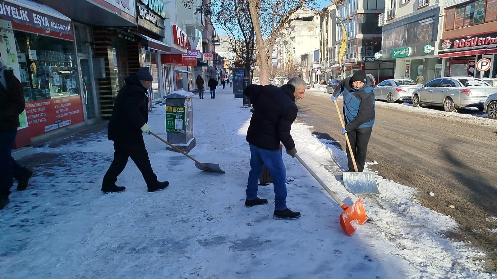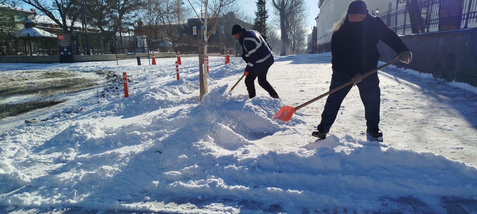 Kars Belediyesi, yoğun kar yağışı ve soğuk hava nedeniyle oluşan buzlanmaya karşı 21 iş makinesi ve çok sayıda personelle sahada görev yapıyor. Sabahın ilk ışıklarıyla birlikte özellikle yaya güvenliğinin sağlanması amacıyla buzla mücadele timleri tarafından kaldırımlarda biriken kar ve buzlar temizlenmeye başlandı.