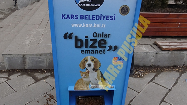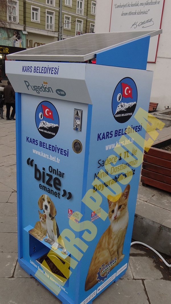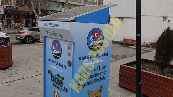 Vali Belediye Başkanı Türker Öksüz, Sokak hayvanlarına sahip çıkıyor.Kars Belediyesi, sahipsiz sokak hayvanları için 'mamamatik' üniteleri kurdu. Bu ünitelerle hem ilin temizliği, hem de hayvanların beslenme ihtiyacının karşılanması hedefleniyor. Kars Belediyesi, “Yaşamın her alanına dokunmak” misyonuyla hayata geçirdiği projeler kapsamında Sokak Hayvanlarını Doyuran Geri Dönüşüm Kutusu uygulaması başlattı. Kars’ta çeşitli noktalarına Belediye tarafından konulan mamamatikler sokak hayvanlarının su ve mama ihtiyacını karşılıyor.Kars Belediyesi Sağlık İşleri Müdür Vekili, Hayvan Sağlığı Yetiştiriciliği ve Su Ürünleri Şube Müdürü Reşat Tazegül şehirde iki ayrı noktada kurulan Mamamatikler hakkında şu bilgileri verdi.Tazegül; “Sayın Valimiz Belediye Başkan Vekili Türker Öksüz’ün talimatıyla sokak hayvanlarının besin ihtiyacını karşılamak için pet şişe ve 1 TL ile çalışan iki adet “Mamamatik” kuruldu. Buradaki amaç; Farkındalık yaratarak sokak hayvanlarının beslenmesi, vatandaşlarımıza hayvan sevgisini ve beslenmelerini sağlayarak farkındalık yaratmaktır. Şuanda Kentte iki ayrı noktada kurulumunu yaptık. Vatandaşlarımızın talepleri olması halinde istenilen bölgelere de kurabiliriz dedi. Her iki Mamamatik güneş enerjisi ve elektrik sistemleri ile çalışmaktadır açıklamasında bulundu.”
