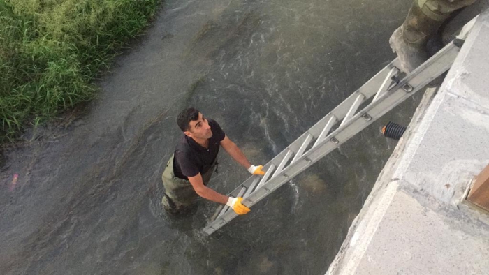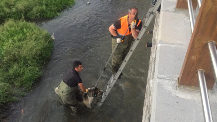 Kars çayına düşen sahipsiz köpek itfaiye ve Kars Belediyesi hayvan barınağı ekiplerince kurtarıldı. Akşam saatlerinde Kars Kalesi Bedesten bölgesinde vatandaşların ihbar üzerine Kars Çayına köpek düştüğü ve çay ortasında bulunan bir alanda mahsur kaldığı bilgisi üzerine bölgeye gelen itfaiye ekipleri ile Hayvan barınağı yetkilileri, merdivenle köprünün altına inerek çaya düşen köpeği kurtarmak için çalışma başlattı. Ekipler, yakalama aparatı yardımıyla köpeği mahsur kaldığı yerden kurtarıldı. Kurtarılan köpek sağlık kontrolleri yapılmak üzere Kars Belediyesi Hayvan Barınağı Veteriner hekimince kontrol altına alındı.
