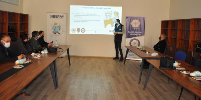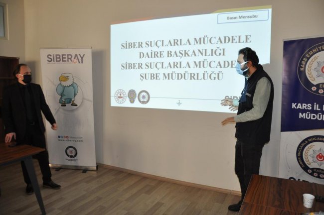 Kars Emniyet Müdürlüğü Siber Suçlarla Mücadele Şube Müdürü Fatih Yüksel, ülke genelinde olduğu gibi Kars’ta da siber dolandırıcıların, öncelikle 3 yöntem kullanarak vatandaşları dolandırdıklarına dikkat çekti.Kente görev yapan basın mensupları ile bir araya gelinerek siber suçlarla ilgili bilgilendirme toplantısında gazetecilerin bu yünde kamuoyunun bilgilendirilmesi için destek isteyen Yüksel, dolandırıcıların vali, vali yardımcıları, muhtarlar ve banka personeli gibi vatandaşları arama yöntemiyle, dolandırıcılık faaliyetlerini gerçekleştirdiklerini söyledi. Kars Polisinin yoğun çalışmalarına rağmen bu türden dolandırıcılık faaliyetlerinin her yıl yüzde 25 oranında arttığının da altını çizen Yüksel, bu yönde Kars basının yapacağı haberlerin çok önemli olduğunu dile getirdi. Emniyet Müdürlüğünün toplantı salonunda gerçekleştirilen programda, siber suçlarla ilgili gazetecilere verilen bilgiler, basın marifetiyle Kars Kamuoyu da bilgilendirildi.Toplantıda; Siber Suçlarla Mücadele Şube Müdürlüğü ekipleri tarafından yapılan sunumda, basın mensuplarına Sosyal Medyanın hayatımızdaki olumlu ve olumsuz etkileri, internet üzerinde işlenen olası suçlar, güvenli internet kullanımı, siber zorbalık, teknoloji bağımlılığı ve internetin çocuklar üzerindeki olumsuz etkisi, ebeveynlere düşen görevler hakkında bilgilendirme yapıldı.