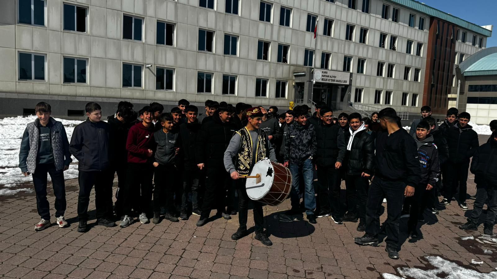 Kars’ta bulunan Haydar Aliyev Mesleki ve Teknik Anadolu Lisesi’nde Ramazan ayının manevi atmosferi düzenlenen etkinlikle öğrencilerle birlikte yaşandı. Okul bahçesinde davul eşliğinde gerçekleştirilen etkinlikte öğrenciler birlik, beraberlik ve kardeşlik duygularını bir arada yaşama fırsatı buldu. Ramazan ayının paylaşma, dayanışma ve hoşgörü iklimi öğrenciler arasında hissedilirken, etkinlik renkli görüntülere sahne oldu.