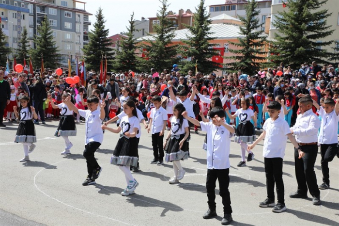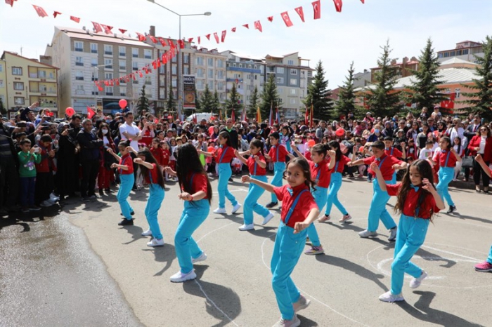 23 Nisan Ulusal Egemenlik ve Çocuk Bayramı daha sonra İlköğretim Okulu öğrencileri tarafından okunan şiirler ve bir birinden güzel gösterilerle son buldu.