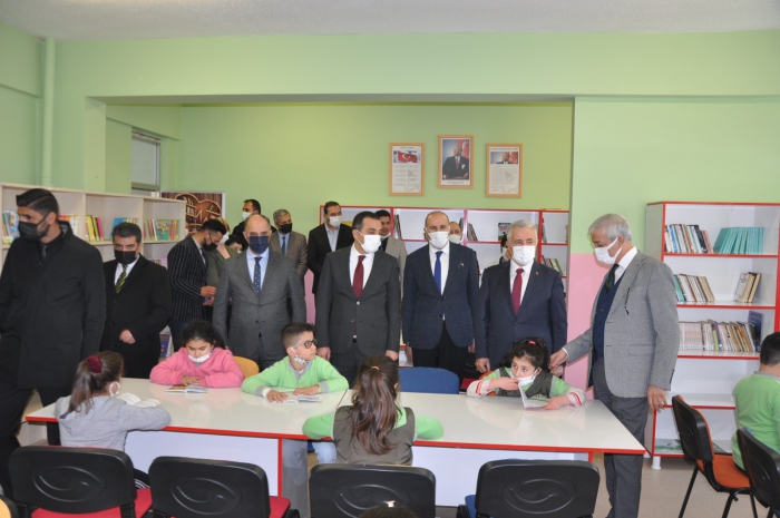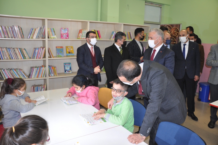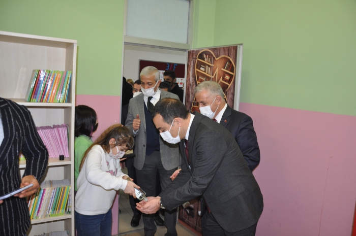 "Kütüphanesiz Okul Kalmayacak" projesi çerçevesinde Kars’ta 552 okulun 321’ine kütüphane yapıldı.Cumhurbaşkanı Recep Tayyip Erdoğan'ın eşi Emine Erdoğan'ın himayelerinde Milli Eğitim Bakanlığı ile Kültür ve Turizm Bakanlığı tarafından ülke genelinde başlatılan "Kütüphanesiz Okul Kalmayacak" projesi çerçevesinde Kars’ta 552 okulun 321’ine kütüphane yapıldı.Cumhurbaşkanı Recep Tayyip Erdoğan'ın eşi Emine Erdoğan'ın himayelerinde Milli Eğitim Bakanlığı ile Kültür ve Turizm Bakanlığınca başlatılan "Kütüphanesiz Okul Kalmayacak" projesi çerçevesinde Kars genelinde 62 bin 750 öğrencinin eğitim gördüğü 552 ilkokul, ortaokul ve liseden 321’i kütüphaneye kavuştu. Kütüphanelere başta Kars Valisi Türker Öksüz olmak üzere Kars Milletvekilleri, 65. Hükümet Ulaştırma, Denizcilik ve Haberleşme Bakanı Ahmet Arslan ve TBMM Tarım, Orman ve Köyişleri Komisyonu Başkanı Prof. Dr. Yunus Kılıç ve AK Parti İl Başkanı Adem Çalkın tarafından kitap bağışı yapıldı. Merkez Atatürk İlkokulu’nda oluşturulan Atatürk İlkokulu Kütüphanesi’nin açılışı da törenle yapıldı. Kütüphanenin açılışını Kars Milletvekilleri, 65. Hükümet Ulaştırma, Denizcilik ve Haberleşme Bakanı Ahmet Arslan ve TBMM Tarım, Orman ve Köyişleri Komisyonu Başkanı Prof. Dr. Yunus Kılıç, Vali ve Belediye Başkan Vekili Türker Öksüz, İl Milli Eğitim Müdürü Aydın Acay ve AK Parti İl Başkanı Adem Çalkın birlikte yaptı. Açılışın ardından protokol üyeleri kütüphaneyi gezdi.Burada gazetecilere açıklamalarda bulunan İl Milli Eğitim Müdürü Aydın Acay, “Kars, Kağızman, Erzurum ve Ankara’daki meslek liselerimizden destek alarak tüm teşkilatı buralardan temin ettik. Kütüphanelerimiz bittikten sonra da öğrenci başına düşen kitap sayılarımızın az olduğunu fark ettik. Bu kitapları da hayırseverlerden temin ederek donattık.” dedi.Kitabın bize her alanda lazım olduğunu ifade eden Milletvekili Kılıç ise, “Derslerle birlikte bir taraftan da ömür boyu eğitime katkı sağlayacak şekilde kitap okumayı öğreniyoruz. Buranın bize sağlayacağı en önemli şey bu ve bu yaşlarda öğreniliyor. Ben de bu okulun mezunuyum aynı zamanda, bu da bir tesadüf oldu. Keşke bizim zamanımızda da okuma alışkanlığımızı geliştirecek böyle katkılar olabilseydi. Şimdi çocuklarımızın dersleriyle birlikte daha güzel ortamlarda ulaşabileceği, elini uzattığında kitap bulabileceği ortamları geliştirmek istiyoruz ki okumayı yaşamının içerisine katsın.” ifadesini kullandı.Vali Öksüz ise, “Cumhurbaşkanımızın eşi Emin Erdoğan hanımefendiye şükranlarımızı sunuyoruz bu projeye himaye ettikleri için, Milli Eğitim Bakanımıza teşekkür ediyoruz. 'Kütüphanesiz Okul Kalmayacak' projesi çerçevesinde bizlere kaynak sağladılar, imkan verdiler. Bizler de ilimizdeki 552 okulun 321’inde kütüphanenin kurulmasını sağlamış olduk. Nihayetinde bu kütüphaneleri oluşturduktan sonra kitap ihtiyacı vardı. Biz de bir kampanya başlattık. Bizler de katkı sunduk. Milletvekillerimiz de sahip çıktılar, kitap sağlanmasında çok büyük gayret ve özveri gösterdiler” diye konuştu. Milletvekili Arslan da, “Cumhurbaşkanımızın eşi Emine Erdoğan’ın 'Kütüphanesiz Okul Kalmasın' kampanyasının başlamasından ziyadesiyle memnun olduk. Vali ve İl Milli Eğitim Müdürü ile konuştuğumuzda gördük ki bütün okullarımız zaten kütüphane sahibi olacak. Nitekim öyle de oldu. Bu önemliydi, ancak bunların içerisinin kitapla doldurulması konusunda valimiz 'Kampanya başlattık' dediğinde, bizler de milletvekilleri olarak valimize ‘Kaç kitap bağışladınız' dedik. ‘4 bin kitap’ demişlerdi. Biz de ‘4 bin kitapta biz bağışlıyoruz’ diyerek kampanyaya destek verdik. Sonra il başkanımız bin kitap, ilçe başkanlarımız, belediye başkanlarımız 500’er kitap destek verdiler. Ancak biz gerek iki milletvekili, gerek il başkanımız, merkez ve Kağızman, Selim ile Sarıkamış ilçe başkanımız adına toplam 7 bin 500 kitap verdik. Bu 7 bin 500 kitabın 6 bin tanesi geldi. 28 okula 7 bin 500 kitabı bağışlamış olacağız” dedi.Protokol üyeleri, daha sonra kütüphanede öğrencilerle bir araya geldi. Vali Öksüz, okula kitap bağışında bulunan milletvekilleri ve il başkanına birer plaket verdi.