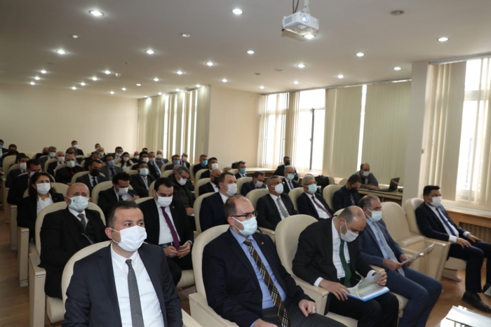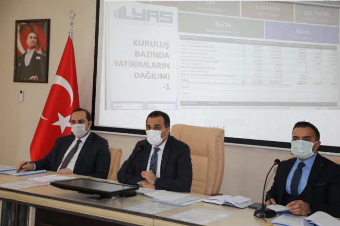 Kars Valisi ve Belediye Başkan Vekili Türker Öksüz yaptığı konuşmada; 13 kurum ve kuruluşun 8 sektörde 185 projesi olduğunu belirterek, projelerin toplam tutarın 8 milyar 204 milyon 570 bin TL olduğunu söyledi. Önceki yıllardan harcama miktarının 712 milyon 961 bin 437 TL olduğunu söyleyen Kars Valisi ve Belediye Başkan Vekili Türker Öksüz, toplam yıllık ödemelerinin ise 632 milyon 469 bin 075 lira olduğunu açıkladı. Yeni harcama tutarının ise 34 milyon 214 bin 210 bin TL, olduğunu söyleyen Kars Valisi ve Belediye Başkan Vekili Türker Öksüz, “Toplam harcama tutarı 747 milyon 241 bin 646 lira olarak gerçekleşmiştir. 20 tanesi ihale aşamasındadır. 78 tanesi de ihale edilecektir. Projelerimizin durumları ise: 185 projenin 2 si bitmiş 85 tanesi devam etmekte 20 tanesi ihale aşamasında 78 başlamayan işimiz var. Projelerin yatırımcı kuruluş bazında dağılımına baktığımızda; DSİ 24 Bölge müdürlüğümüzün 66 projesiyle ilk sırada yer almaktadır. 35 proje İl Milli Eğitim Müdürlüğümüzün, 24 proje Karayolları 18 Bölge Müdürlüğümüzün, 14 proje TCDD 4. Bölge müdürlüğünün, 10 Proje Kafkas Üniversitesi Rektörlüğümüzün, 9 Proje Belediye Başkanlığımızındır. Ayrıca 7 Proje Erzurum Orman Bölge Müdürlüğümüzün, 5 Proje İl Özel İdaremizin, Şeker Fabrikamızın 4 projesi, İl Sağlık Müdürlüğümüzün 2 projesi, Tarım Orman Bakanlığımızın 13. Bölge müdürlüğünün ve TEİAŞ 15.bölge müdürlüğümüzün 1 projesi bulunmaktadır. Sektörel dağılıma baktığımızda ise 77 proje tarım sektöründe, 39 proje ulaştırma ve haberleşme sektöründe, 41 proje eğitim sektöründe, 11 proje sosyal kamu hizmetleri sektöründe, 9 proje imalat 5 proje sağlık 2 proje, enerji 3 proje olmak üzere1 projemiz de konut sektöründe bulunmaktadır. Projelerin İlimiz ve merkez ilçe dağılımında baktığımızda; 70 proje Kars Merkezde, 34 proje Sarıkamış, 18 proje Kağızman, 13 Proje Arpaçay, 12 Proje Selim 8 proje Akyaka, 7 Proje Digor, 3 Projede Susuz ilçemizde bulunmaktadır. Muhtelif ilçelerimizde de 20 adet projemiz bulunmaktadır.” Şeklinde konuştu.