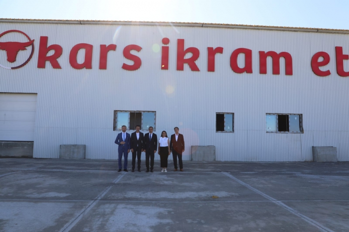 Kars Valisi Belediye Başkanı Türker Öksüz OSB’ye ziyarette bulundu.Kars Tarıma Dayalı İhtisas Besi Organize Sanayi Bölgesinde milyonluk yatırım. Kars Ticaret ve Sanayi Odası Başkanı İş İnsanı Ertuğrul Alibeyoğlu tarafından Kars’a kazandırılan Et Entegre Tesisini ziyaret eden Vali/Belediye Başkanı Türker Öksüz, TKDK desteğiyle kurulan ve faaliyete başladığında Doğu Anadolu Bölgesinin en büyük üç tesisinden biri olacak İkram Entegre Et Tesislerinde incelemelerde bulundu. Kars Besi Organize Sanayi Bölgesinde İkram Et Entegre Tesisi tarafından yapılan çiftçinin ve besinin kaderi olan özel sektörün yaptığı en büyük tesis yatırımı toplamda 100.000.000 TL’ye mal olan 6.400.000 TL ilk kısmı Tarım Kırsal Kalkınmayı Destekleme Kurumu tarafından desteklenen, 250 büyükbaş 250 küçükbaş kesim kapasiteli ve tüm et ürünlerinin işleneceği (sucuk kavurma pastırma vb) tesiste 40 kişinin istihdam edilmesi öngörülüyor.Vali Belediye Başkanı Öksüz, “50 adet 50 başlık, 50 adet 100 başlık, 15 adet 250 başlık besi işletme parseli, Yem Fabrikası, Et Entegre Tesisi ve Biyogaz Enerji Tesisi’nin bulunduğu Kars Tarıma Dayalı İhtisas Besi Organize Sanayi Bölgesi’nde parsel tahsislerimiz devam etmektedir. Biyogaz Enerji Tesisinde hayvansal gübrelerden elektrik enerjisi, ısı enerjisi ve organik gübre üretiminin de yapılacağı Kars Tarıma Dayalı İhtisas Besi Organize Sanayi Bölgesi’nde bin kişilik de istihdam sağlanmış olacak.” Dedi.İkram Entegre Et Tesisinin kurucusu Kars Ticaret ve Sanayi Odası Başkanı İş İnsanı Alibeyoğlu, Kars Tarıma Dayalı İhtisas Besi Organize Sanayi Bölgesi’nin kurulum aşamasında bizler de iş insanı olarak söz verdik besi bölgesinde ilk iş sahasını biz oluşturacağız dedik bu sözümüzü tutmuş olduk. İlimizin hayvancılığına ve yetiştiricisine hizmet vermesi adına, Doğu Anadolu Bölgesinin en büyük tesisinden biri olan İkram Entegre Et Tesislerini kurduk. Alibeyoğlu, Kısa zaman içerisinde tamamlanacak ve bölgemiz hayvan yetiştiricilerimizin yüzünü güldürecek olan İkram Entegre Et Tesislerinde onlarca vatandaşımız da iş sahibi olacaktır dedi.