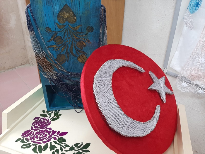 Kars Halk Eğitim Müdürlüğü 2021-2022 eğitim öğretim yılı el sanatları sergileri kapsamında el sanatları sergisi açıldı. El sanatları yıl sonu sergisinde kursiyerler tarafından yapılan bir yıllık el ürünleri yer aldı. Sergide ahşap işlemesi, ahşap boya, kırk yama ve benzeri nakış çalışmaları her dalda el sanatının yer aldığı sergi Kars Mehmetçik İlkokulu salonunda İl Milli Eğitim Müdür yardımcısı Harun Yenice, Halk Eğitim Müdür Abdullah Aldemir ve davetliler katıldı. Serginin açılışını İl Milli Eğitim Müdür yardımcısı Harun Yenice, Halk Eğitim Müdür Abdullah Aldemir ve davetliler birlikte yaptılar. Açılışta konuşma yapan Milli Eğitim Müdür yardımcısı Yenice, halk eğitim merkezi müdürlüğümüz tarafından her yıl olduğu gibi bu yılda usta öğreticilerimiz el sanatlarıyla ilgili yapmış oldukları çalışmaları bugün burada sergilemişler bizlerde değerli davetlilerimizle birlikte açılışını yapıyoruz emeği geçen bütün arkadaşlarıma ve kursiyerlerimize ayrı ayrı teşekkür ediyorum dedi.Ardından El sanatları ve giyim kursu öğretmeni Pervin Ulusoy, bugün kursiyer arkadaşlarımızla hazırlamış olduğumuz el sanatları ve giyim sergisini açmış bulunmaktayız yılsonu sergimizde el sanatları, giyim kuşam ve el örgü işlemelerinin sergilendiği bir sergi. Beş ay süren bir eğitimin sonrasında 14 kursiyerimizle birlikte ikiyüz âdete yakın ürünümüz var burada dedi.Ulusoy, kursiyerlerimiz atıl durumda bulunan ürünleri yeniden hayata kazandırdılar. Elde ettiğimiz ürünlerin bir çoğu satıldı. Satılan ürünlerden elde edilen gelirler ise kursiyerlerimizin aile geçimine katkı sunulmak üzere kendilerine verildi. Konuşmaların ardından serginin açılışı gerçekleştirildi.