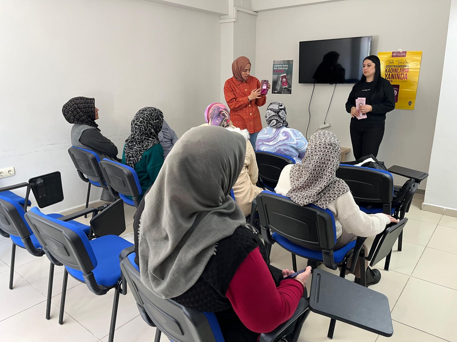 Faikbey Caddesi’nde kurulan stantta vatandaşlarla bir araya gelen ekipler, ayrıca Kars Aile Destek Merkezi’nde (ADEM) eğitim gören kadınlara yönelik bilgilendirme çalışması yaptı. Gerçekleştirilen etkinliklerde kadına yönelik şiddetle mücadele konusunda önemli bilgiler paylaşılırken, acil durumlarda hızlı şekilde yardım talebinde bulunulmasını sağlayan KADES (Kadın Destek Uygulaması) tanıtıldı. Uygulamanın nasıl indirileceği ve kullanılacağı konusunda katılımcılara detaylı bilgiler verildi.