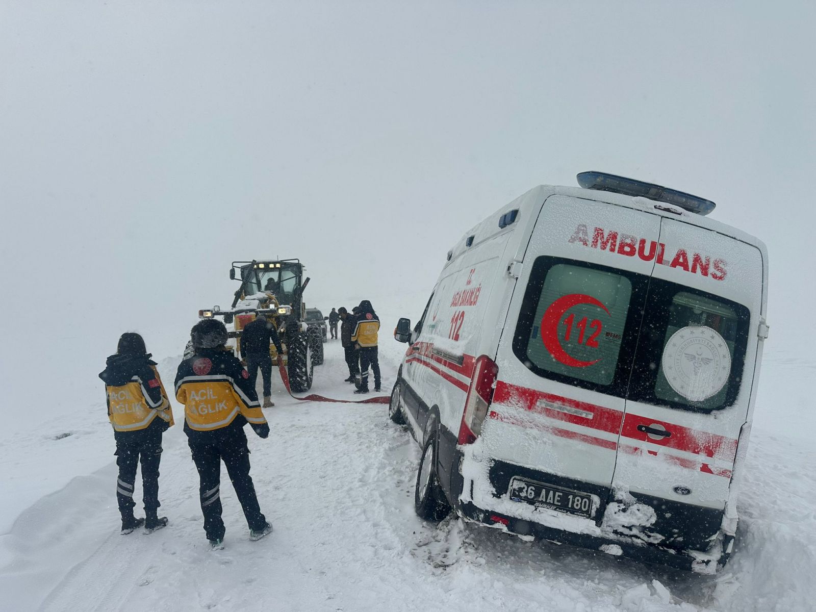 Yoğun kar ve tipi nedeniyle Özel İdaresi ekipleri yol boyunca sağlık ekiplerine eşlik ederken, yolların ulaşıma açık tutulması için çalışmaların sürdüğü bildirildi.