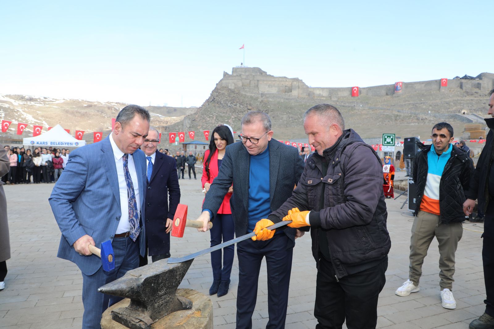 Etkinlikler, Kafkas halk dansları gösterileriyle devam etti. Kutlamalara katılan Vali Ziya Polat ile Belediye Baaşkanı Prof. Dr. Ötüken Senger, Nevruz geleneği kapsamında örs üzerinde demir dövdü.