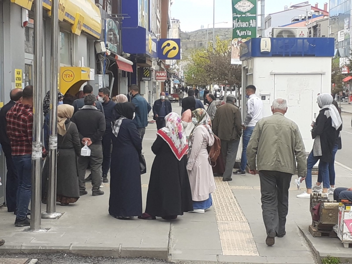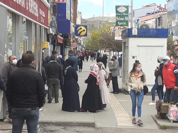 Kars'ta bugün caddeler adeta dolup taştı. Vatandaşların duyarsızlığı pes dedirtti. Alınan onca önlemlere ve sokağa çıkma yasağına rağmen vatandaşların kurallara uymadığı görüldü. Şehrin işlek caddelerinde açık olan işyeri, PTT ve banka şubeleri ile bir çok yerde adeta uzun uzun kuyruklar oluştu.