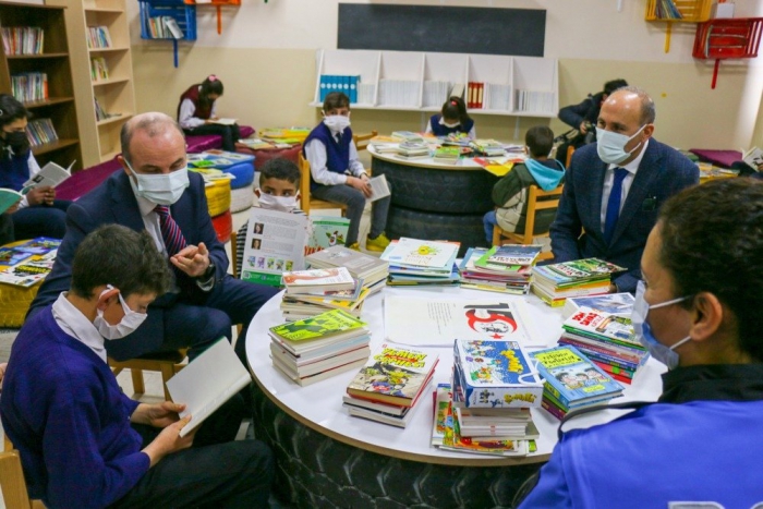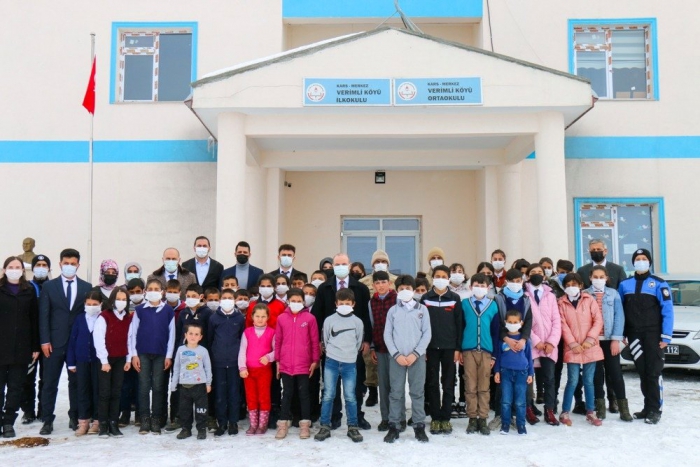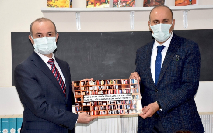 Kars’ta “Sıfır Atık” ve “Kütüphanesiz Okul Kalmayacak” projeleri 2 bin 140 rakımlı Verimli Köyü İlk ve Ortaokulunda hayat buldu. Kütüphaneye Kars İl Emniyet Müdürü Yavuz Sağdıç'ın koordinesinde polis ekipleri de kitap bağışında bulundu.Kars’ta “Kütüphanesiz Okul Kalmayacak” projesi kapsamında 85 öğrenci ve 9 öğretmeni bulunan 12 derslikli ve 3 yıl önce yeni hizmet binasında eğitim-öğretim faaliyetine başlayan Verimli Köyü İlk ve Ortaokulunun kütüphanesi, atık malzemeler kullanılarak yapıldı. Kütüphanede Emine Erdoğan himayesinde yürütülen “Kütüphanesiz Okul Kalmayacak” ve “Sıfır Atık” projeleri birlikte hayat buldu.Proje kapsamında kullanılmayan otomobil ve kamyon lastikleri ile tahta kasalar, öğretmen ve öğrenciler tarafından dönüştürülerek masa, sandalye, sehpa, kitaplık rafı, aksesuar ve aydınlatma ürünleri olarak kütüphanede kullanıma uygun hale getirildi.Kütüphanesinin açılış törenine İl Milli Eğitim Müdürü Aydın Acay, İl Emniyet Müdürü yavuz Sağdıç, Jandarma Merkez İlçe Komutanı Binbaşı Özgür Cengiz, Okul Müdürü Ömer Osko ile öğrenciler katıldı.Açılışta açıklama yapan İl Emniyet Müdürü Yavuz Sağdıç, “Kütüphanesiz Okul Kalmasın projesi ile ilgili bizlerde Kars İl Emniyet Müdürlüğü olarak personelimizle bir araya geldik, nasıl katkıda bulunuruz diye düşündük ve bir kısım personelimiz kendi evlerinden getirdiği kitaplar, bir kısım personelimiz maddi olarak yardım topladık. Toplamda bin 500 adet kitap almayı uygun gördük ve kitaplarımızı Milli Eğitim Müdürlüğümüze teslim ettik. Bu kitaplar kentteki 4 okula paylaştırılacak. Atık malzemelerle çok güzel bir kütüphane yapılmış, çok hoşumuza gitti, kitaplar yerlerini aldı bundan sonra da öğrencilerden, çocuklardan istediğimiz kitaplar raflarda kalmasın, kitaplar okunsun. Kitaplar raflarda kalmayıp akıllarda kalırsa çok daha iyi olur.” dedi.İl Milli Eğitim Müdürü Aydın Acay ise Bakanımız tarafından Türkiye genelinde öğrencilerimize geri dönüşüm fikrinin ve kültürünün geliştirilmesi için atık malzemelerden kütüphane oluşturulması talimatı geldi. Talimatın ardından öğrendik ki buradaki okulumuzda başlatılan çalışma bizleri de ziyadesiyle memnun etti. Tamamen geri dönüşüm malzemelerinden bu kütüphane oluşturuldu ve beş kuruş para harcanmadı. Kütüphanesiz 371 okulun tüm tefrişatını biz yapmıştık ama bu okulun tüm malzemelerini okuldaki arkadaşlar gerçekleştirdi. Bu iki gönüllü işin bir arada yapılması bizleri son derece memnun etti.” ifadesini kullandı.Kütüphanenin diğer kütüphanelerden farkını anlatan Verimli İlk ve Ortaokulu Müdürü Ömer Osko ise, “Tamamen sıfır atıktan kurulmasıdır. Dolaplar, masalar, çocukların oturduğu koltuklar tamamen sıfır atık üzerine kurulmuş, kullanılmayan malzemelerden üretilmiş çalışmalardır. Kütüphanemizi kurarken, otomobil ve kamyon lastikleri, tahta kasaları kullandık. Bu ürünleri aldık, temizledik, boyadık ve yapıştırma yöntemiyle bugünkü haline getirdik.” diye konuştu. Konuşmaların ardından Sağdıç ve Aydın, öğrencilerle bir araya gelerek sohbet etti. Düzenlenen program hatıra fotoğrafının çekimiyle sona erdi.