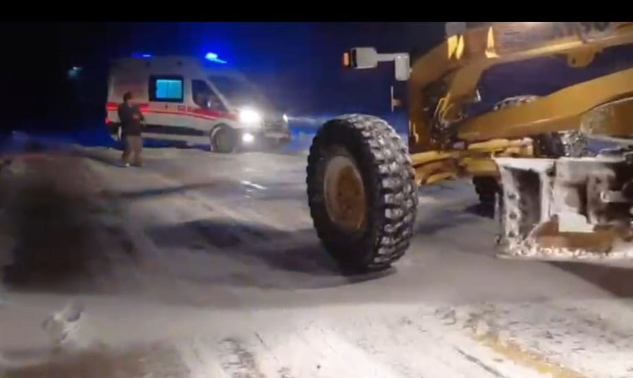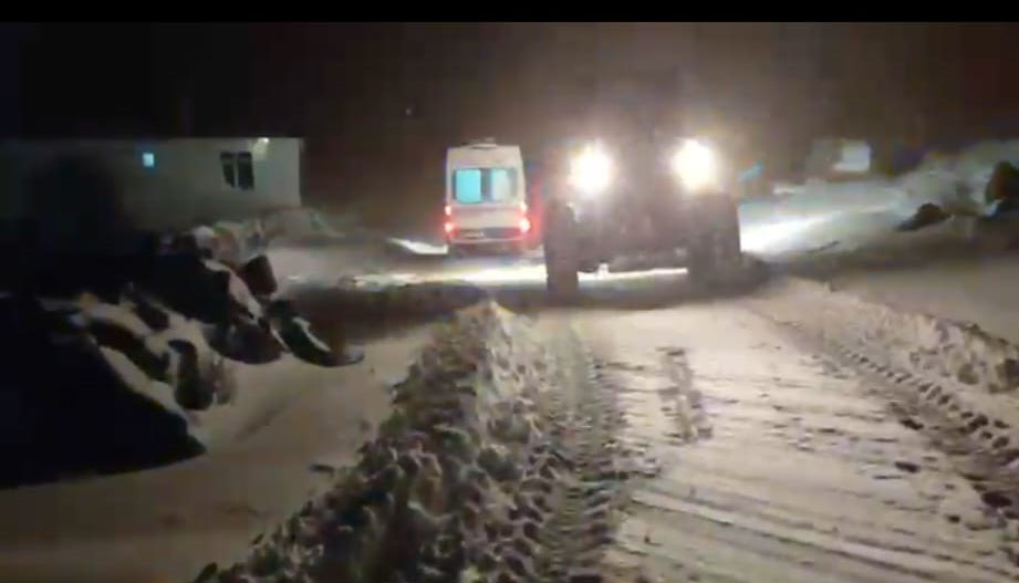 Kar ve tipi nedeniyle köy yolunun ulaşıma kapanması üzerine sağlık ekipleri İl Özel İdaresi ekiplerinden destek istedi. Karla mücadele ekiplerinin yolu açmasının ardından sağlık ekipleri hamile kadına ulaştı.