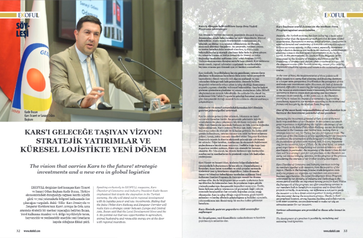 Kars Ticaret ve Sanayi Odası (KTSO) Yönetim Kurulu Başkanı Kadir Bozan, Kars ekonomisinin gelişimi, sınır ticareti, bölgesel kalkınma vizyonu ve yeni dönem hedefleri üzerine EKOFULL Dergisi’ne özel bir röportaj verdi.
