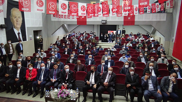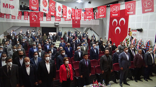 Hüseyin Nihal Atsızın selamlamasıyla kongreye katılanları selamlayan MHP İl Başkanı Tolga Adıgüzel ise; Gönülleri birleşenler! Selam sizlere,