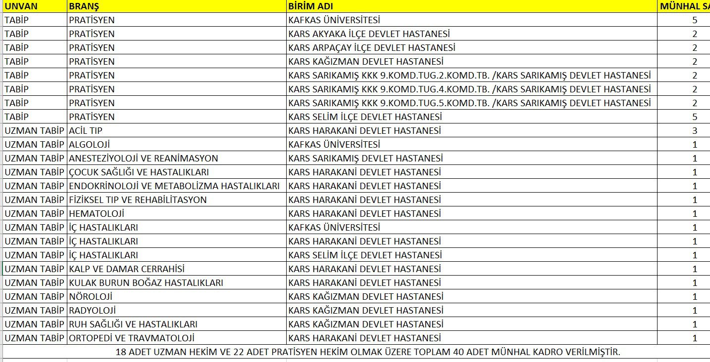 Kars’a 126. Dönem DHY Kurası kapsamında 40 hekim kadrosu.