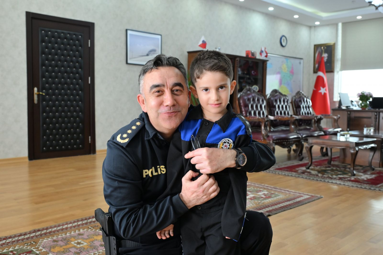 Ziyaretten büyük mutluluk duyduğunu ifade eden İl Emniyet Müdürü Tombul, Çınar Çelik’i makamında ağırlayarak yakından ilgilendi. Minik misafirine en sevdiği polis arabalarından hediye eden Tombul, günün anısına hatıra fotoğrafı çektirdi.