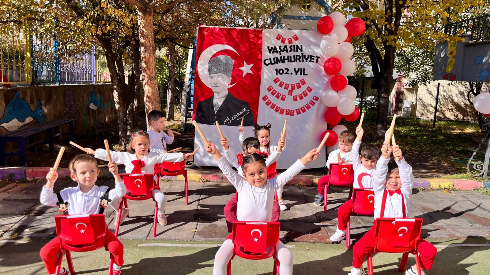 Cumhuriyet Bayramı'nın 102'inci yıl dönümü kapsamında minik öğrenciler okullarında gerçekleştirdikleri kutlama programıyla doyasıya eğlendiler.