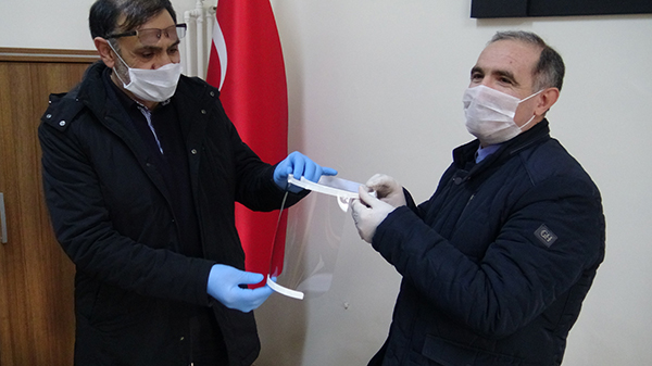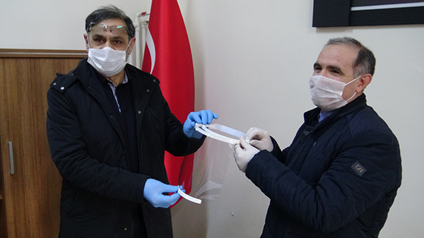 KARS PUSULA / ADEM ALP Siperlik Maskeler teslim edildi. İlim Yayma Cemiyeti Gençlik Merkezinde sağlıkçılara özel "Siperlik Maske" üretimi yapıyor.Tüm dünyayı etkisi altına alan koronavirüse karşı tedbirler en üst seviyede uygulanmaya devam ediyor. Alınan tedbirlerin yanı sıra sağlıkçıların ihtiyaç duyduğu maske üretimi de Kars’ta ilim yayma cemiyeti mühendisleri tarafından yürütülüyor.İlim yayma cemiyeti tarafından üretilen maskeler Cemiyet Başkanı Ebubekir Keleş tarafından Kafkas Üniversitesi Rektörü Prof. Dr. Hüsnü Kapu’ya teslim edildi.Kafkas Üniversitesi Sağlık Araştırıma ve Uygulama Hastanesi hekimleri tarafından kullanılmak üzere üretilen maskeleri teslim eden İlim Yayma Cemiyeti Başkanı Ebubekir Keleş cemiyet olarak sağlık çalışanlarının ihtiyaçlarının karşılanması konusunda ellerinden gelen tüm fedakarlığı ortaya koyacaklarını söyledi.Maskeleri teslim alan Kafkas Üniversitesi Rektörü Prof. Dr. Hüsnü Kapu'da İlim Yayma Cemiyetine teşekkür ederek, diğer oda vakıf ve derneklerden de sağlık çalışanları için aynı hassasiyeti göstermelerini istedi.