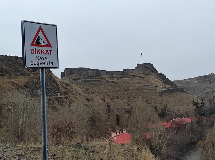 Kars’ta kalenin arkasında bulunan mevkiinde yola düşen kaya ve kaya parçaları, sürücüler için tehlike saçıyor. Yetkililer ise sadece tabela ile önlem aldı.Kars Kalesine dereiçi mevkiinden çıkan yolu kullanan sürücüler, özellikle yağmurlu havalarda yamaçlarda ve tepelerde bulunan kaya ve kaya parçalarının toprağın yumuşaması ile birlikte trafiğin yoğun olduğu yola düştüğünü dile getirdi.Yetkililere gelen ihbar üzerine bölgeye belli aralıklarla “Dikkat Kaya Düşebilir” tabelası dikilerek, yol güzergahında sürücülerin dikkatli olması istendi.Belli aralıklarla etkili olan sağanak yağış nedeniyle tepelerden düşen kaya ve kaya parçalarının tehlike oluşturduğunu ifade eden vatandaşlar, “Buraya yetkililerce tabela dikildi ancak bu yeterli bir önlem değil. Burası tarihi Kars Kalesine giden yol ve kente gelen yerli ve yabancı turistler bu yolu kullanıyor. Burada olası bir facianın oluşmaması için kaya ve kaya parçalarının düşme riski olan bölgelere demir ağlar çekilmeyi veya yol trafiğe kapatılmalıdır.” dediler.