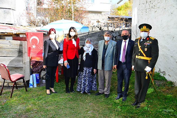 KARS PUSULA / ADEM ALPArdahan Valisi Hüseyin Öner, Eşi Zehra Mine Öner İle Birlikte Cumhuriyet Bayramında Şehit Ailelerini Ziyaret etti. Hakkâri Şemdinlide vatanı görevini yaptığı sırada Şehit olan Er Muzaffer Çelik ve Antalya Kumlucada görevi başında Şehit olan Başkomiser İskender Irmakın ailelerini evlerinde ziyaret eden Vali Öner, ailelerin acısını paylaşarak, Vatan, millet, bayrak gibi kutsal değerlerimiz uğruna canlarını hiçe sayarak şahadete yürüyen Şehitlerimizin geride kalanlarına sahip çıkmak bize bir borçtur. Devlet olarak her zaman için şehit ailelerimizin yanında olmaya devam edeceğiz. Sizlerin acısıyla dertlenip, sevincinizle mutlu olacağız. Allah Şehitlerimize rahmet etsin. Bugünde anlamlı bir gün Cumhuriyetimizin kuruluş yıl dönümü, bizlerde Şehitlerimizin kıymetli ailelerini ziyaret ettik. Aile fertleri ile hasbıhalde bulunduk, Allah Şehit ailelerimize başka acılar yaşatmasın dedi. Vali, Şehit aileleri ziyaretine Tugay Komutanı Berat Acar ve eşi Sevgi Acarda eşlik etti.