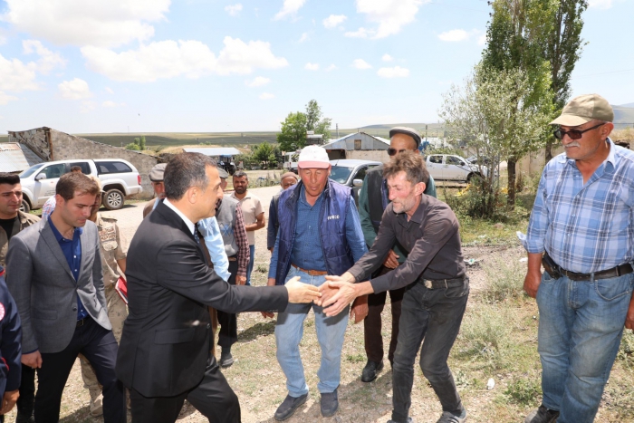 Kars Valisi ve Belediye Başkan Vekili Türker Öksüz, Kars’ta genelinde yaşanan şiddetli yağış ve dolunun ardından oluşan selden zarar gören Selim ve Kağızman’ın köylerinde incelemelerde bulundu. Ziyaretler kapsamında ilk olarak Selim Kırkpınar Köyü’nü ziyaret eden Vali Öksüz, doludan zarar gören tarlalarda incelemelerde bulunarak yetkililerden bilgi aldı. Köydeki taziye evinde köylülerle bir araya gelen Kars Valisi ve Belediye Başkan Vekili Türker Öksüz, geçmiş olsun dileklerini ileterek, devletin tüm kurumlarıyla vatandaşlarının yanında olduğunu, ilgili kurumların hasar tespit çalışmalarını sonuçlandırmasının ardından zararların tazmin edileceğini söyledi. Daha sonra Büyükdere Köyü’ne geçen Kars Valisi ve Belediye Başkan Vekili Türker Öksüz, burada da köy halkıyla taziye evinde bir araya geldi. Yaşanan dolu yağışı ve oluşan selden dolayı köylülere geçmiş olsun dileklerini ileten Vali Öksüz, köylülerin talep ve sorunlarını dinleyerek, gereken her türlü çalışmanın yapılacağını ve yaşanan mağduriyetlerin giderileceğini söyledi. Selim köylerinin ardından Kağızman’a geçen Kars Valisi ve Belediye Başkan Vekili Türker Öksüz, selden etkilenen Bayam Mahallesinde incelemelerde bulundu. Yaşanan dolu yağışı ve oluşan selden dolayı geçmiş olsun dileklerini ileten Vali Öksüz, ilgili kurumlarca gereken çalışmaların yapılarak mağduriyetlerin giderileceğini ifade etti. Yaşanan selden dolayı bazı evlerin zarar gördüğü Karakuş Mezrası’nda da incelemelerde bulunan Vali Öksüz, gerekli çalışmaların yapılması ve mağdur olan vatandaşların ihtiyaçlarının karşılanması için yetkililere talimat verdi. Kars Valisi ve Belediye Başkan Vekili Türker Öksüz’ün köy ziyaretlerine; Selim Kaymakamı Mubin Demirkıran, Kağızman Kaymakamı Okan Daştan, Kağızman Belediye Başkanı Nevzat Yıldız, Selim Belediye Başkanı Coşkun Altun, Tarım ve Orman İl Müdürü İbrahim Altıntaş, DSİ 24. Bölge Müdürü Serdar Kotan, Karayolları 18. Bölge Müdürü Behçet Erenkara, İl Basın ve Halkla İlişkiler Müdürü Seyit Müçteba Erdem, Selim İlçe Tarım ve Orman Müdürü Ercan Ödül ve diğer yetkililer katıldı.