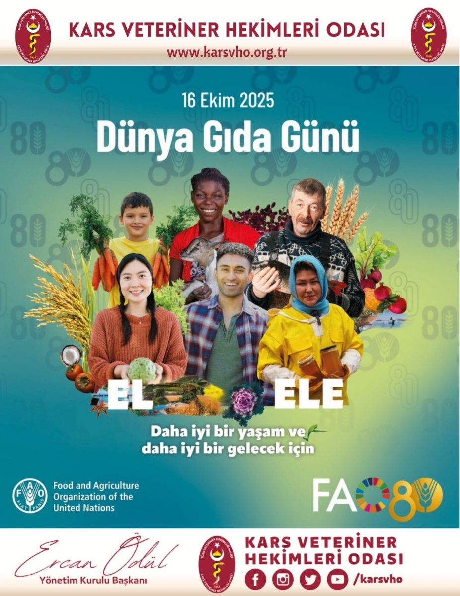 Kars Veteriner Hekimleri Odası Başkanı Ercan Ödül, 16 Ekim Dünya Gıda Günü dolayısıyla yaptığı açıklamada, dünyada yaklaşık 673 milyon insanın açlıkla mücadele ettiğini, 2.4 milyar insanın ise gıda güvencesizliğiyle karşı karşıya olduğunu söyledi.