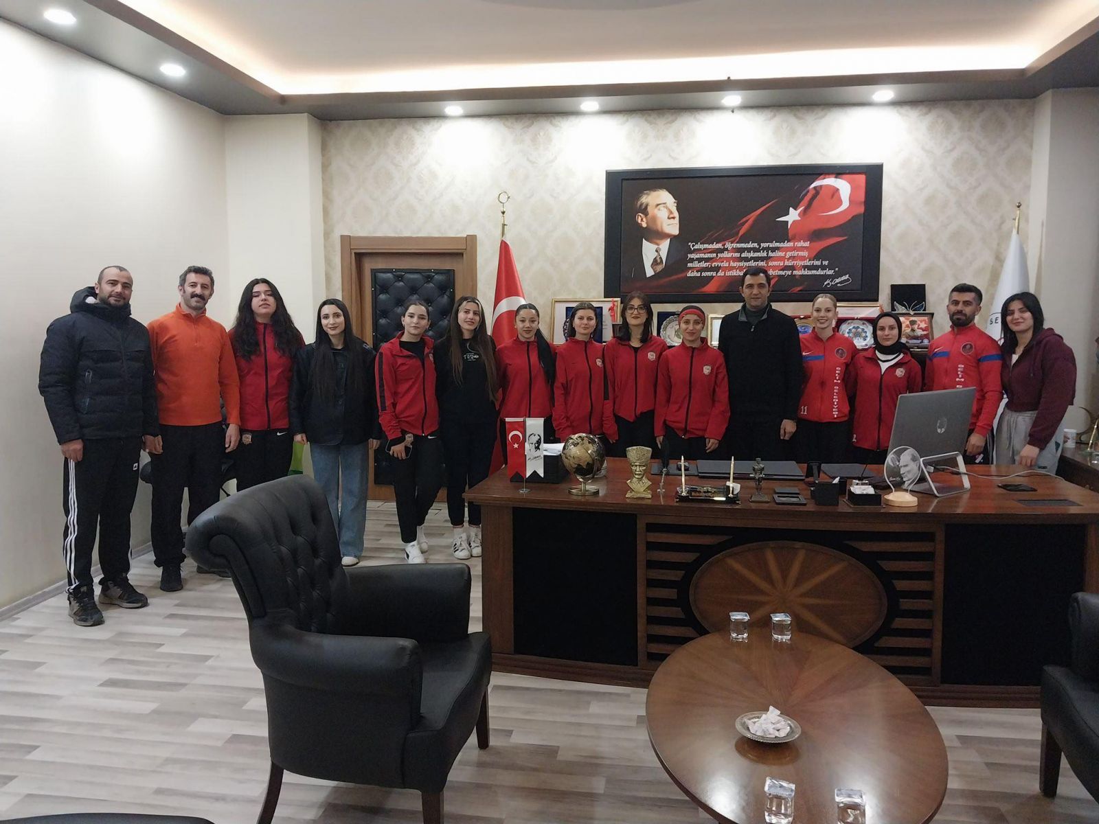 Selim 1957 Spor Kulübü yöneticileri ve sporcuları, Belediye Başkanı Barış Koç’u makamında ziyaret etti. Samimi bir atmosferde gerçekleşen görüşmede, kulübün son dönemde yürüttüğü sportif faaliyetler, altyapı çalışmaları ve genç sporcuların gelişimine yönelik projeler ele alındı.