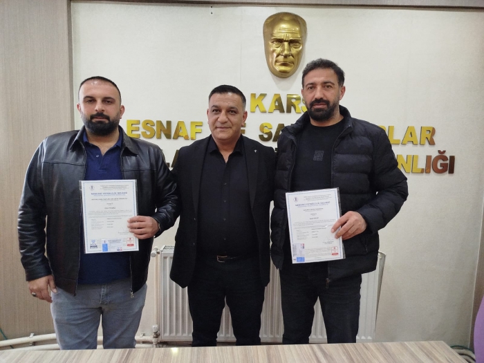 Kars’ta Meslek Belgesi Seferberliği: 16 Branşta Belgeler Teslim EdildiKars Esnaf ve Sanatkarlar Odaları Birliği ile Türkiye Esnaf ve Sanatkarları Konfederasyonu arasında imzalanan protokol kapsamında, çeşitli meslek dallarında sınavlara katılan üyelere mesleki yeterlilik belgeleri teslim edildi.Protokol çerçevesinde; oto galeri, emlak danışmanlığı, otomotiv mekanikerliği ve otomotiv elektromekanikerliği gibi meslek dallarında mesleki yeterlilik sınavına giren ve başarılı olan üyelere belgeleri takdim edildi.Belge dağıtımında konuşan ESOB Başkanı Murat Bakırhan, mesleki yeterlilik belgesi almaya hak kazanan tüm üyeleri tebrik ederek, “Yeni belgeleriyle birlikte iş hayatlarında daha güvenli, kaliteli ve standartlara uygun hizmet sunmalarını temenni ediyorum. Tüm üyelerimize başarılar diliyorum,” dedi.Uygulama kapsamında toplamda şu meslek gruplarında yeterlilik belgeleri verildi:1.Ağdacı (Seviye – 2)2.Dövme Uygulayıcısı (Seviye – 3)3.Epilasyon Uzmanı (Seviye – 4)4.Güzellik Uzmanı (Seviye – 4)5.Kadın Kuaförü (Seviye – 4)6.Erkek Berberi (Seviye – 4)7.Makyaj Uygulayıcısı (Seviye – 3)8.Manikürist (Seviye – 3)9.Masaj Uygulayıcısı (Seviye – 3)10.Protez Tırnak Uygulayıcısı (Seviye – 3)11.Motorlu Kara Taşıtları Alım Satım Sorumlusu (Seviye – 5)12.Otomotiv Elektromekanikçisi (Seviye – 5)13.Otomotiv Mekanikçisi (Seviye – 4)14.Otomotiv Kaportacısı (Seviye – 4)15.Servis Aracı Şoförü (Seviye – 3)16.Sorumlu Emlak Danışmanı (Seviye – 5)Bu belgeler sayesinde üyeler, hem sektördeki rekabet gücünü artırıyor hem de hizmet kalitesini yükselterek vatandaşlara daha nitelikli hizmet sunma imkânı elde ediyor.