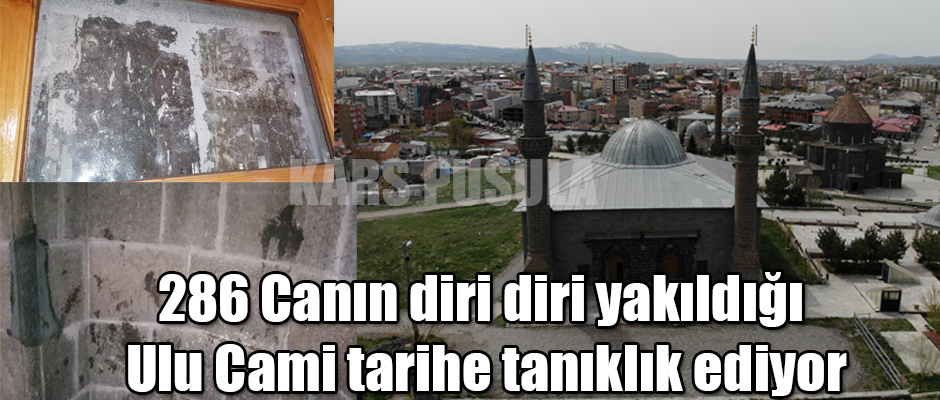 Ermeniler Kars’ta, 1918 yılında Ulu Cami’ye, ‘anlaşma yapacağız’ diyerek toplayarak diri diri yaktığı Türklerin kan ve yağları halen cami duvarlarında duruyor. Kars Kaleiçi Mahallesi’nde bulunan ve 17’inci Yüzyılda Osmanlı Padişahı Sulan İbrahim döneminde yaptırılan Ulu Cami, Ermeni mezaliminin canlı izlerini günümüze taşıyor. Cami, 1877-78 Osmanlı Rus Savaşı'ndan sonra Kars’ın Rus işgalinde kaldığı yıllarda şehrin ileri gelenlerinden 286 kişiyi, 'anlaşma yapacağız' vaadiyle kandırıp Ulu camide toplayarak ve ardından yakılarak tahrip edildi ve kullanılamaz hale getirildi. Diri diri yakılan insanların duvarlara sıçrayan kan ve yağlarının izi ise halen o günkü gibi duruyor.Yine yakılan insanların kan ve yağ izlerinin bulunduğu duvarın orijinal 2 taşı çerçeve içinde tutuluyor. Ermeni katliamının belgesi olan bu kalıntılar cami derneği tarafından muhafaza ediliyor.Ulu Cami Dernek Başkanı Yasin Aşkın Yıldırım, Kars Ulu Cami’nin Türkiye’de en dramatik olayların yaşandığı cami olduğunu söyledi.Başkan Yıldırım, “Kars Ulu Cami Türkiye’de gerçekten en dramatik olayların yaşandığı cami, 1918 yılında Ermeni taşnak çeteleri tarından Kars’taki ileri gelenler toplanıp, ‘burada sorunlarımız hakkında bilgi alış-verişinde bulunacağız’ diye Kars’ın ileri gelenleri yaklaşık 286 kişi olduğu söyleniyor. Cami toplayıp bunları ateşe vermişler. Şehit etmişler. Bizler her yıl bu şehitlerimizi anmak için burada Kuran-ı Kerim okutuyoruz” dedi.Kars Ulu Cami duvarlarında bulunan ve Ermeniler tarafından yakılan Türklerin ‘kan ve yağ’ izleri çerçeveye alınarak muhafaza ediliyor. Ulu Cami önünde bulunan kitabede ise Ermeni mezaliminin fotoğrafları yer alıyor.